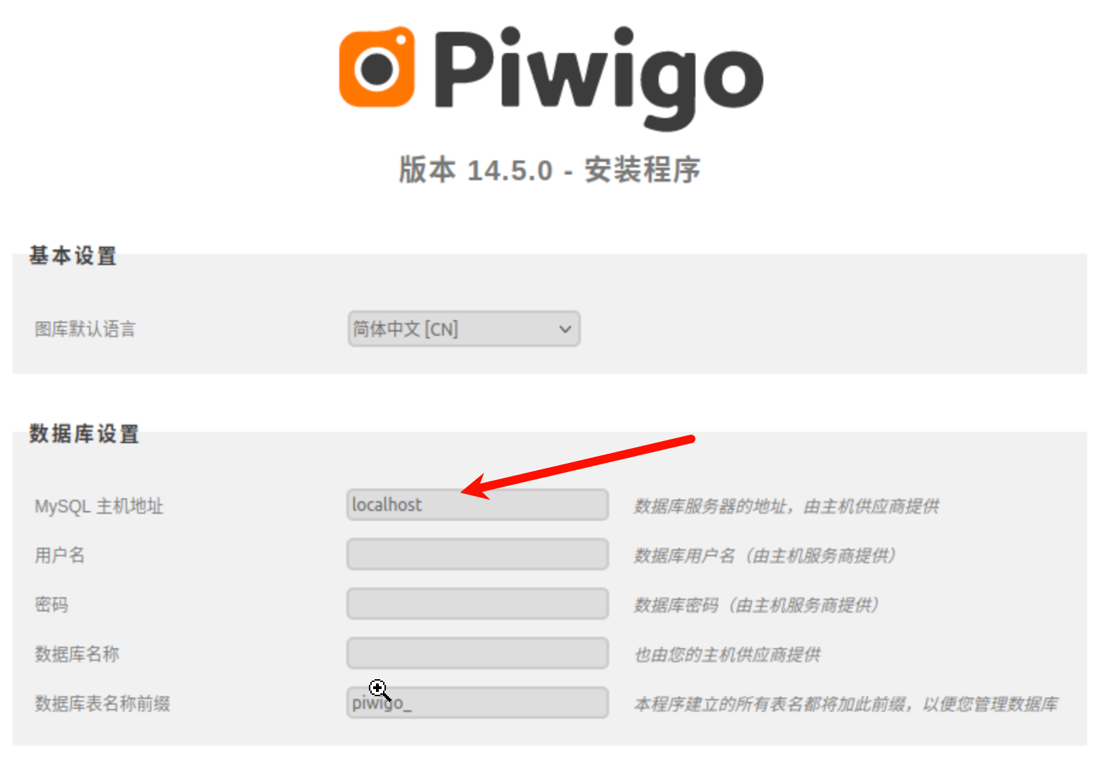 piwigo docker compose拉起的时候,初始化界面中的主机地址需要填的是数据库服务的主机名称,比如我这里的piwigo-db:3306.
